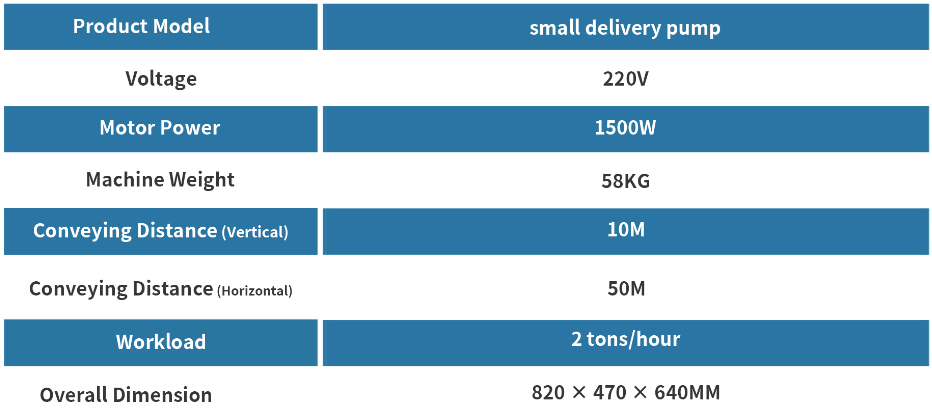 This extrusion-type delivery pump is mainly used for self-leveling mortar grouting and pouring in small constructionsites, It can be easily transported by a single person, placed flexibly, and does not require complicated installation ormuch space. It can stably deliver self-leveling mortar. Moreover,it adopts a corrosion-resistant engineering plasticpump body and a stainless steel impeller, which are anti-aging and resistant to mild chemical corrosion, so leakageor component wear is not easy to occur during long-term use. It is equipped with a one-key start-stop buttonand clear indicator lights, so novices can get started quickly. It is not easy to slide when placed and is suitable fordifferent working environments.